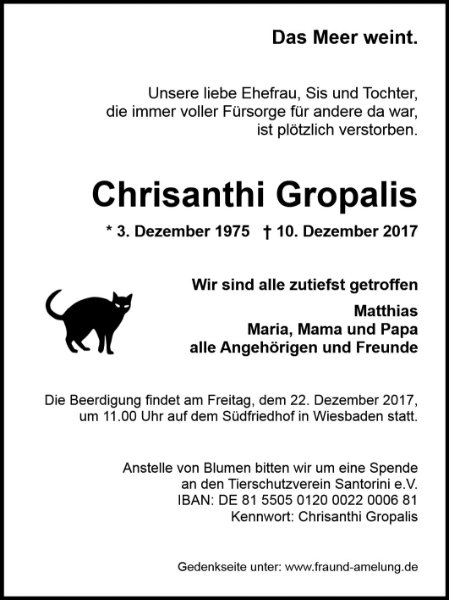 Jetzt ist sie für immer gegangen. Das Meer weint und wir mit ihm.