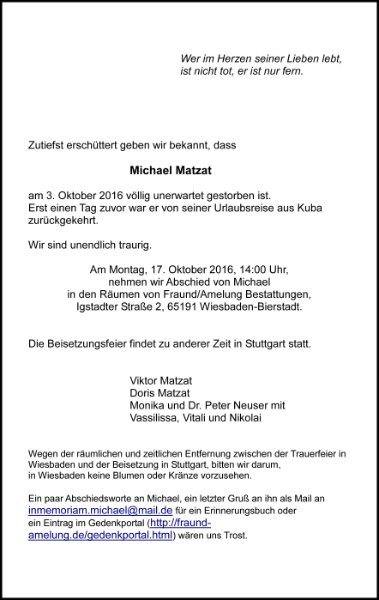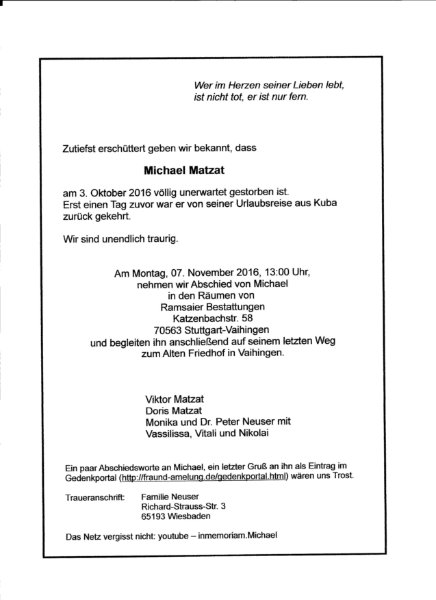 Michael Matzatgestorben am 3. Oktober 2016
